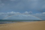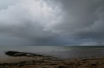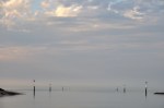 Promenade dans la baie du Mont-Saint-Michel, sous un ciel changeant, le plus souvent quasi méditerranéen, parfois brumeux, puis plus nuageux. Le soleil, l’ombre des nuages, le sable, l’eau, la tangue, dessinaient des lignes colorées, comme une façon abstraite de dessiner l’absence de la mer : absente pour cause de grande marée, elle était très loin….
