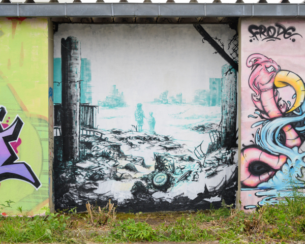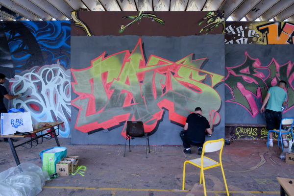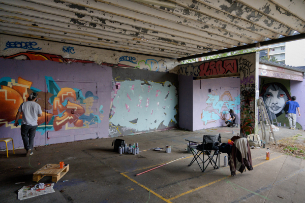 Le 25 mais, à peu de chose près un mois avant la fermeture du site pour destruction et construction d’un nouvel ensemble d’immeubles, une journée consacrée au graph et à la musique (notamment un beau concert de musique Touareg. Une quinzaine de grapheurs se sont retrouvés et ont passé une journée à élaborer leurs œuvres, souvent superbes. Quelques images.