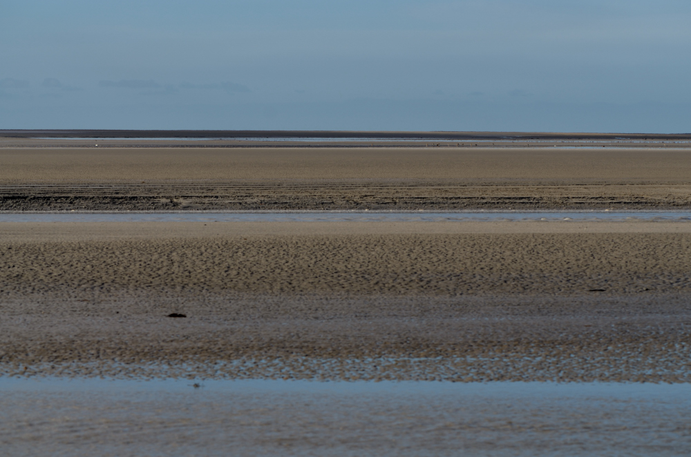 Ne garder que les lignes bleues et brunes que forment le sable et l’eau de mer.